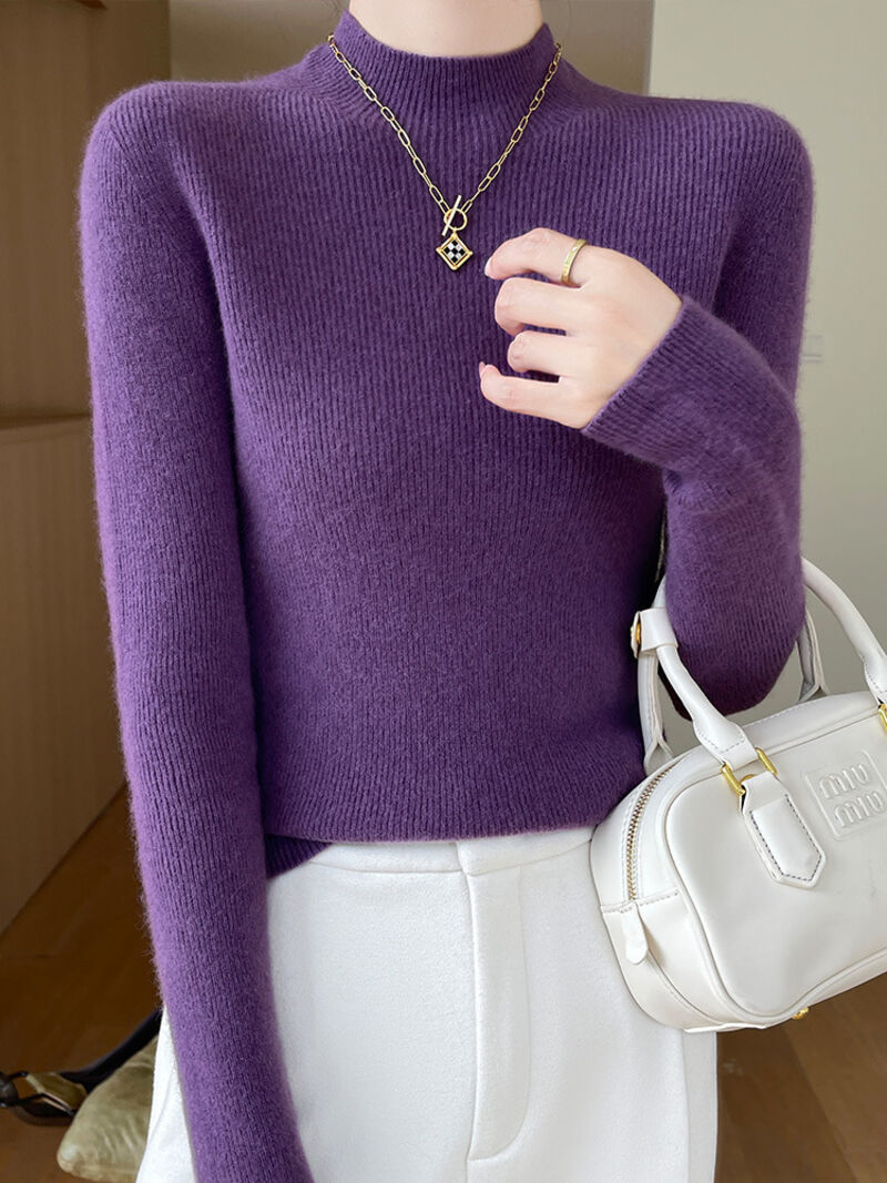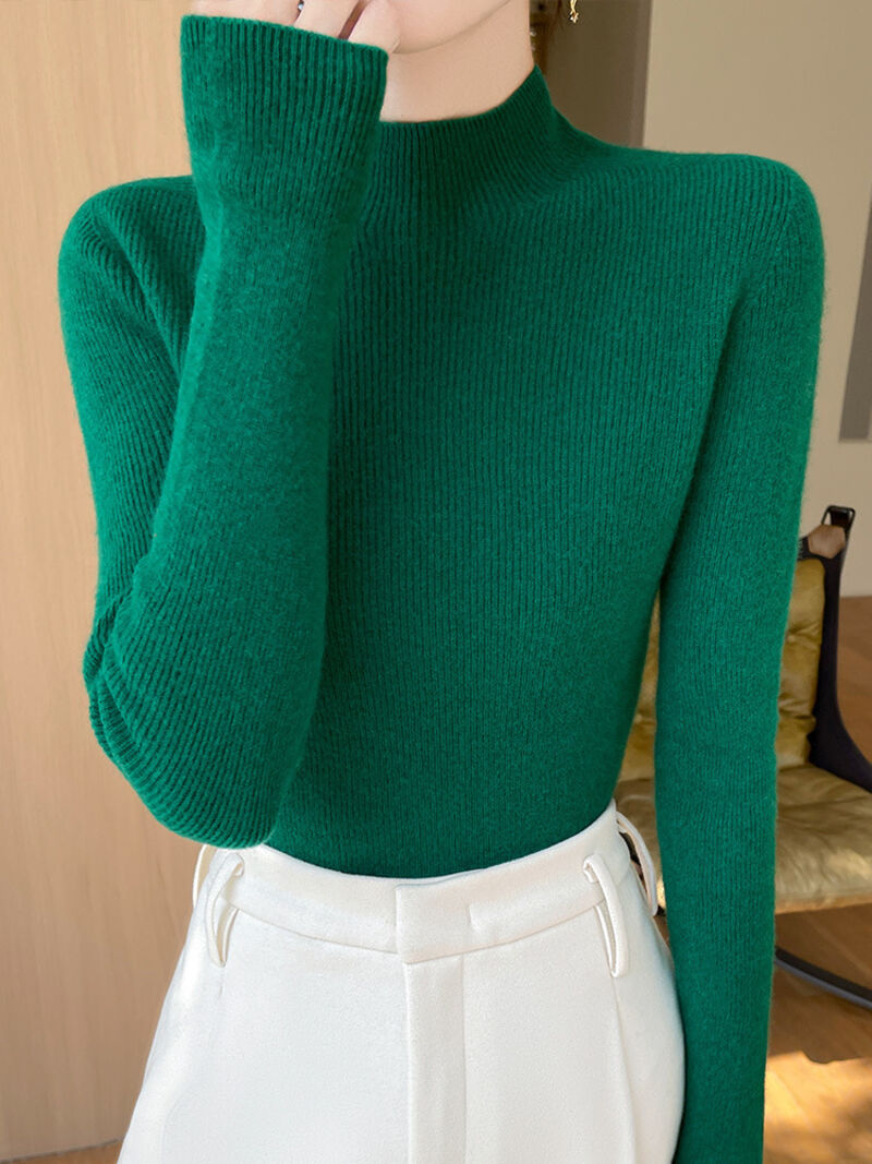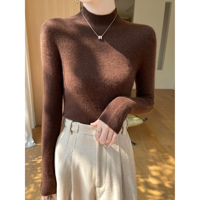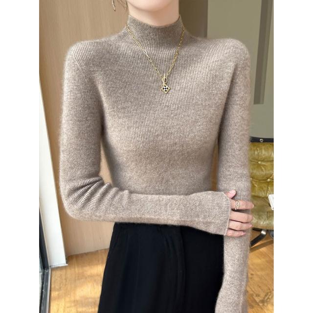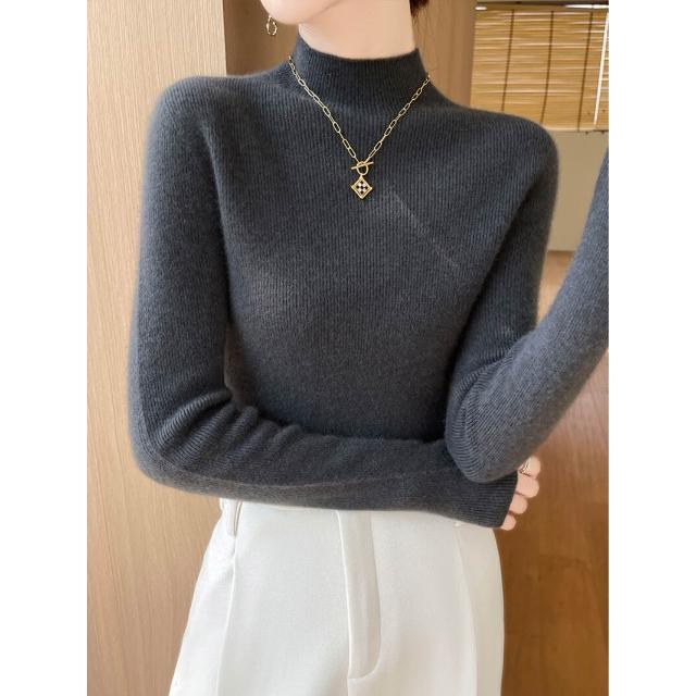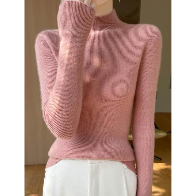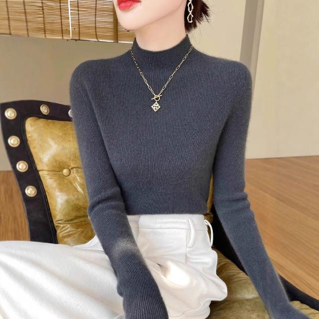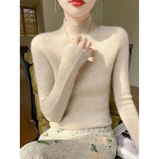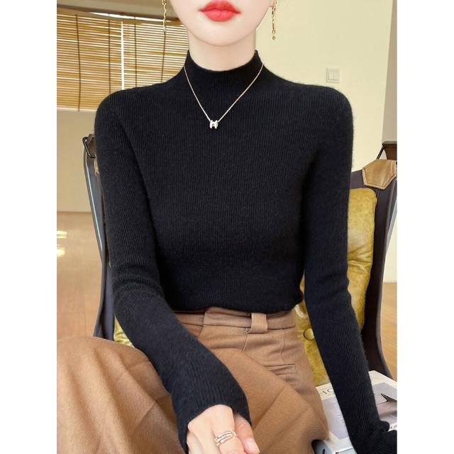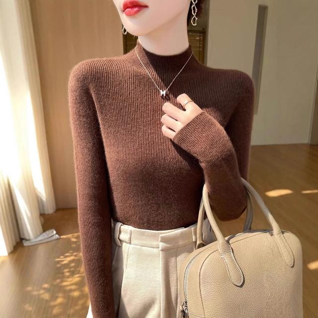 免運 免稅 一線成衣新款修身顯瘦無縫針織上衣氣質優雅半高領打底衫女士