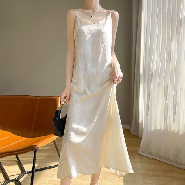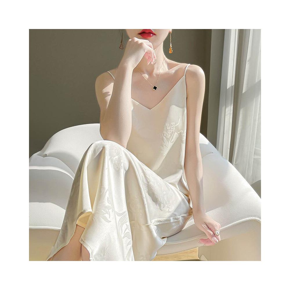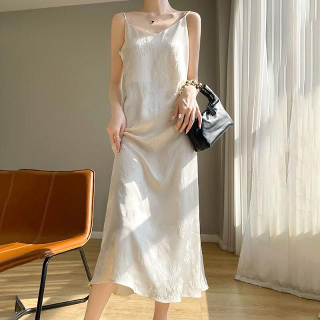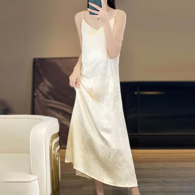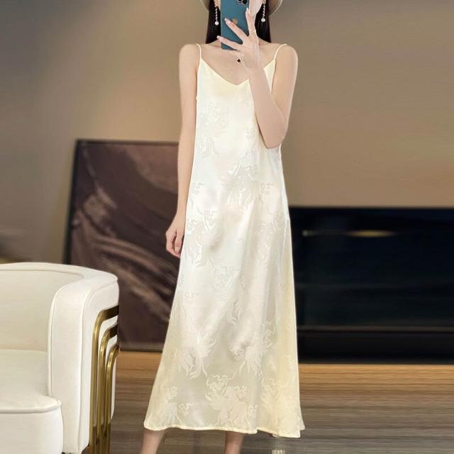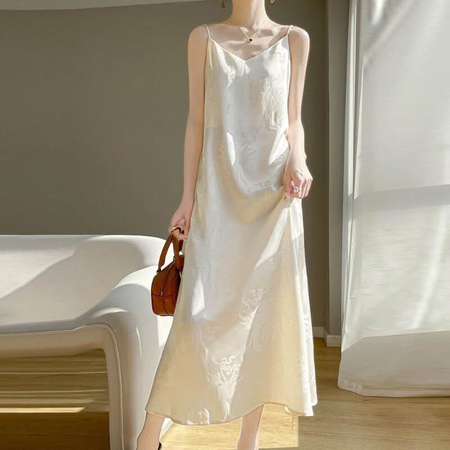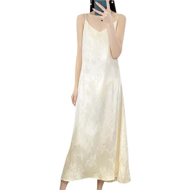 免運 免稅 新中式性感提花吊帶連衣裙女絲滑緞面長裙年夏季新款國風薄款