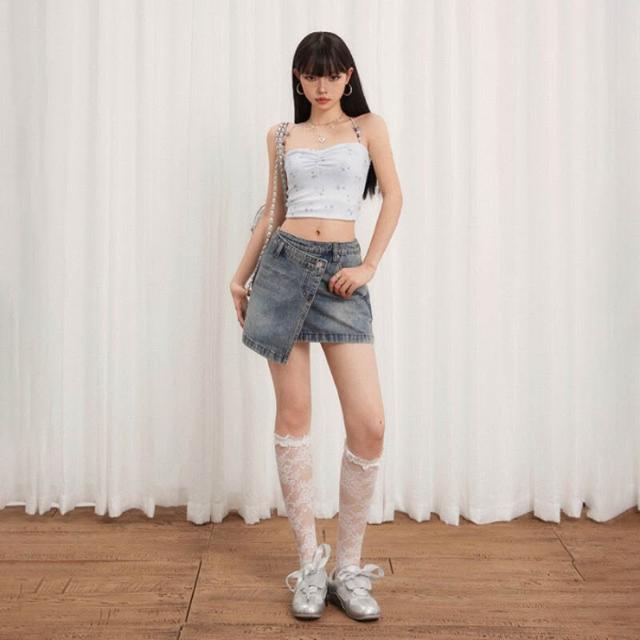 免運 免稅 YC&美式復古辣妹低腰不規則短裙百搭顯瘦包臀a字裙防走光牛仔裙