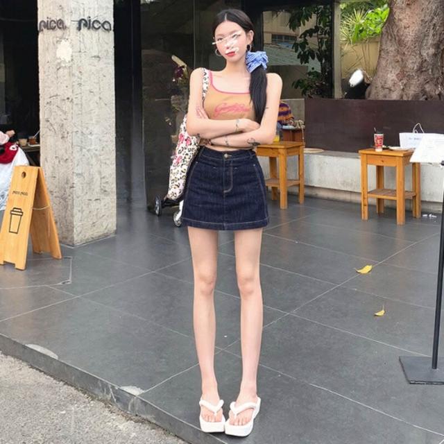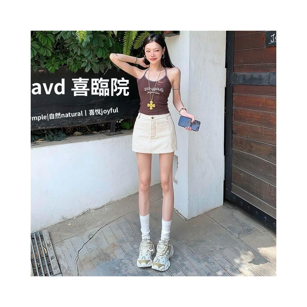 免運 免稅 米白色半身牛仔短裙女夏季新款高腰顯瘦防走光a字辣妹包臀裙