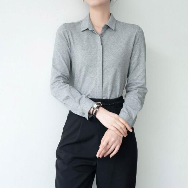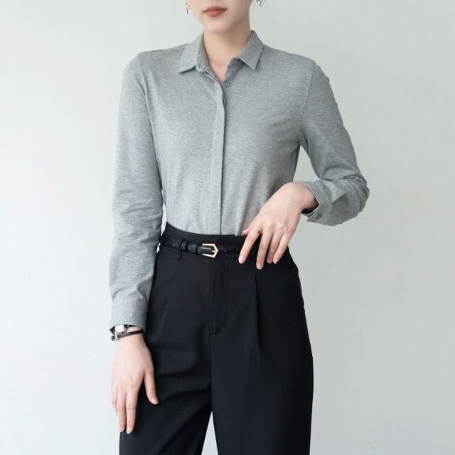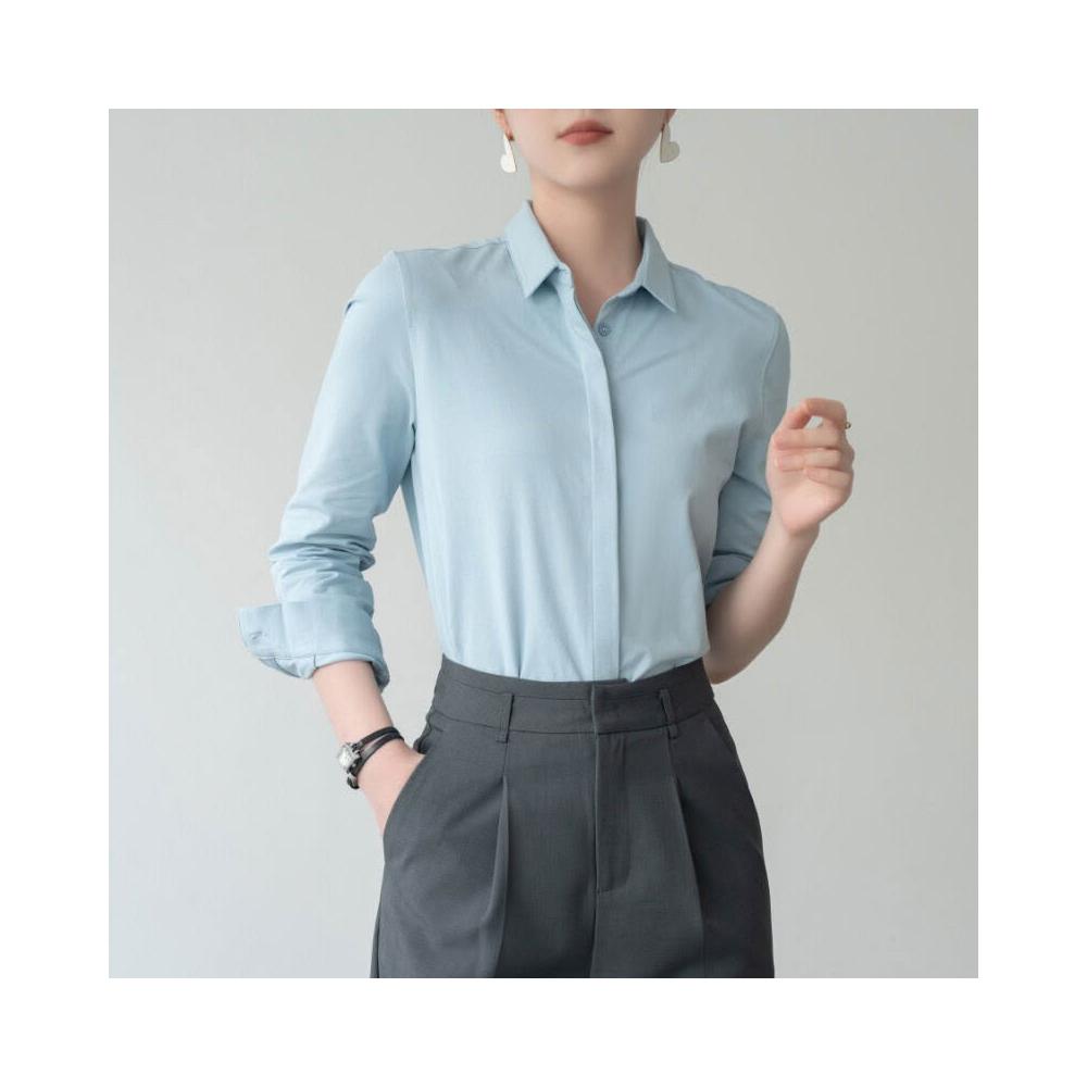 免運 免稅 春秋經典氣質通勤百搭柔軟親膚休閑長袖彈力純棉襯衣面試女式襯衫