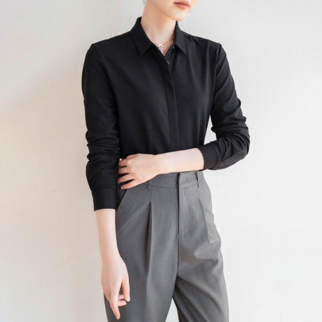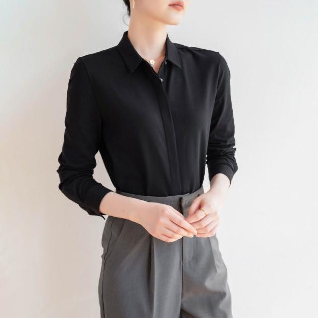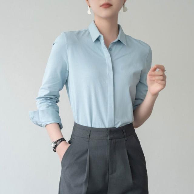免運 免稅 春秋經典氣質通勤百搭柔軟親膚休閑長袖彈力純棉襯衣面試女式襯衫