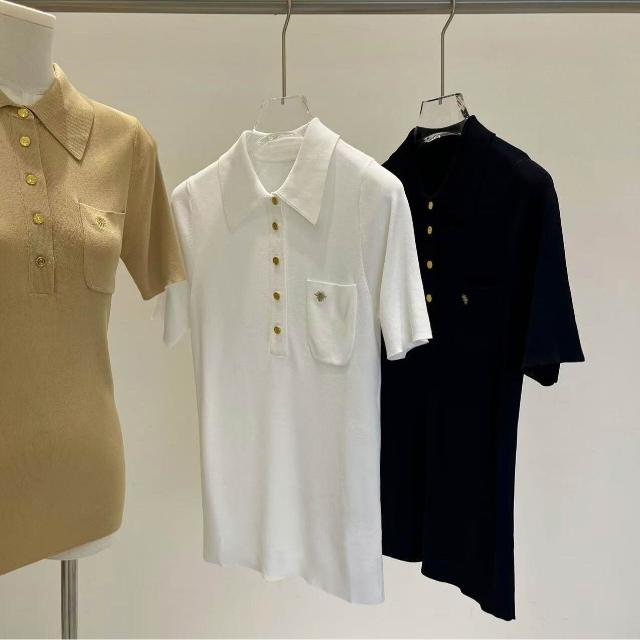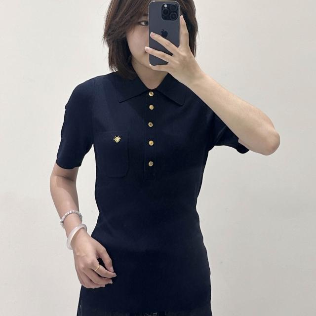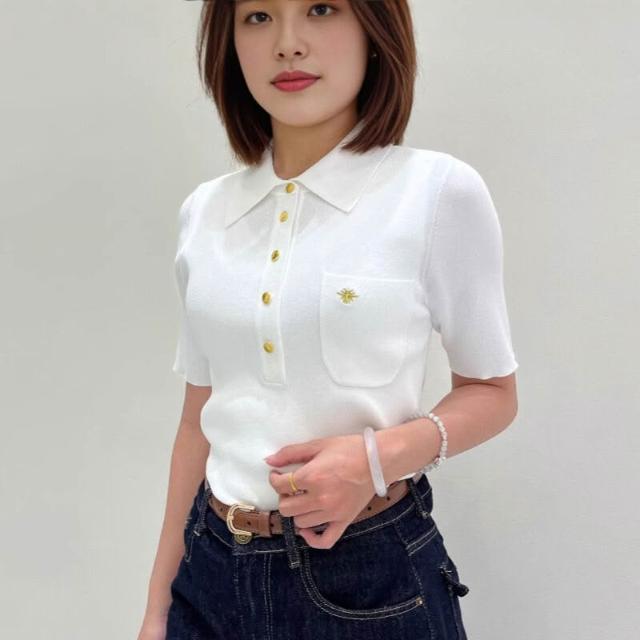 免運 免稅 南油高貨刺繡小蜜蜂涼感薄POLO翻領短袖針織衫女夏季款品