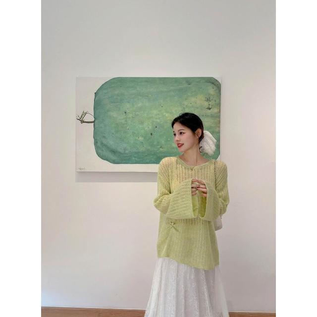 免運 免稅 镂空鉤花長袖針織衫女春夏新款韓系寬松百搭微透防曬罩衫上衣