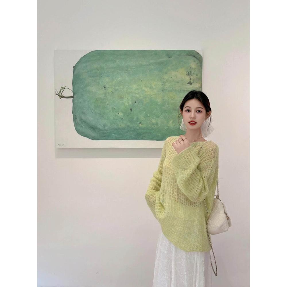 免運 免稅 镂空鉤花長袖針織衫女春夏新款韓系寬松百搭微透防曬罩衫上衣