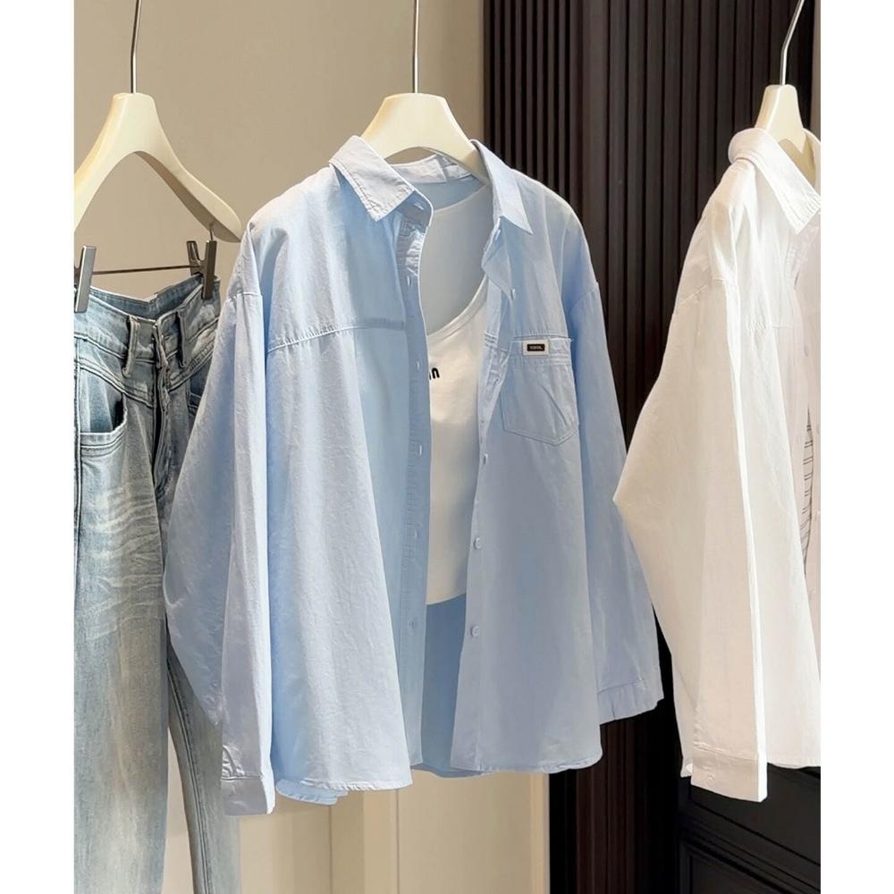 免運 免稅 春夏季洗水棉長袖襯衫通勤穿搭女2026新款襯衣外套防曬外穿上衣潮