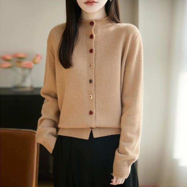 免運 免稅 2026春裝新款紅色韓版小清新毛衣外套針織開衫女春秋彩色單排扣子