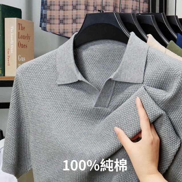 免運 免稅 100%棉男士針織衫V領海鷗領短袖透氣輕薄男裝針織POLO衫短袖男t
