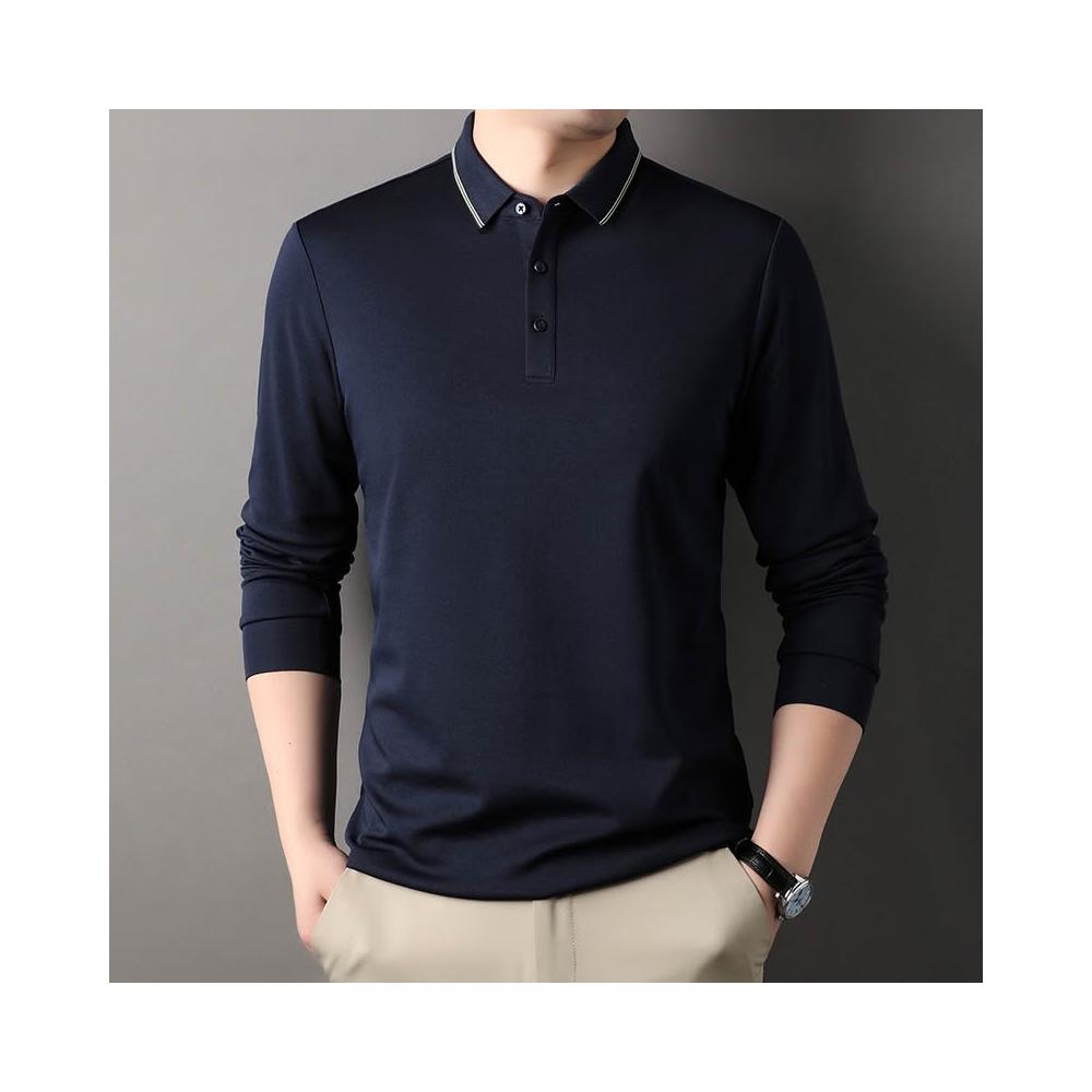 免運 免稅 桑蠶絲Polo衫男士高級感春季新款商務休閑