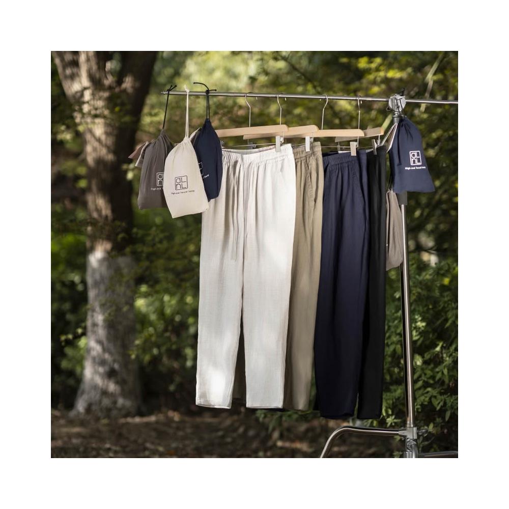 免運 免稅 篙端天絲亞麻面料 可收納!薄款親膚透氣抗皺春夏男簡約休閑褲