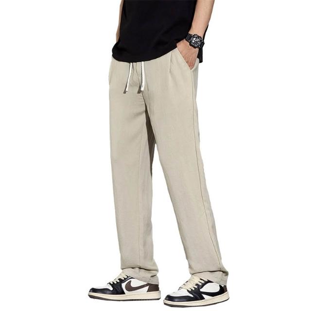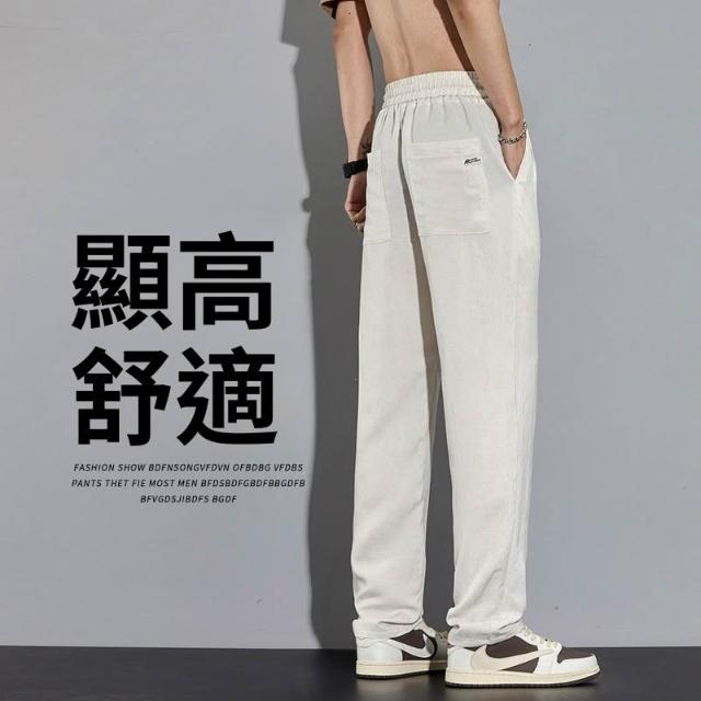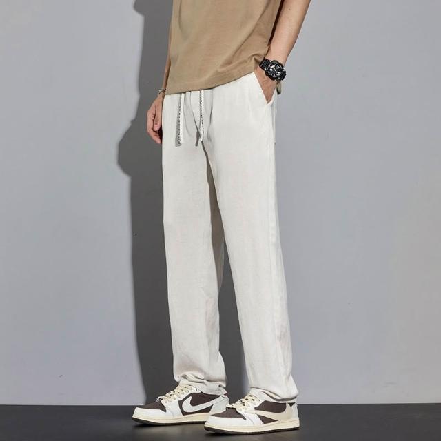 免運 免稅 夏季薄款休閑褲男寬松長褲子男士新款運動直筒闊腿男褲子亞麻