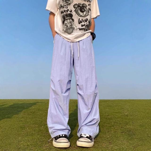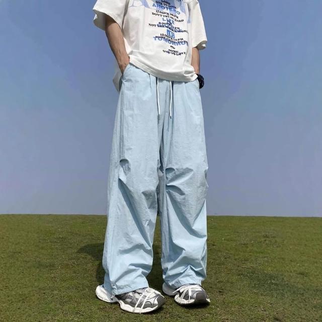 免運 免稅 美式速幹降落傘兵褲男夏季薄款潮牌寬松休閑運動沖鋒闊腿工裝褲子