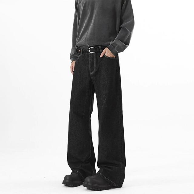 免運 免稅 丹寧原色闊腿牛仔褲男秋季美式高街寬松長褲cleanfit水洗拖地褲子