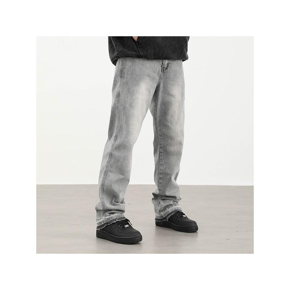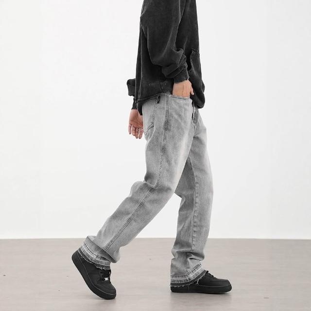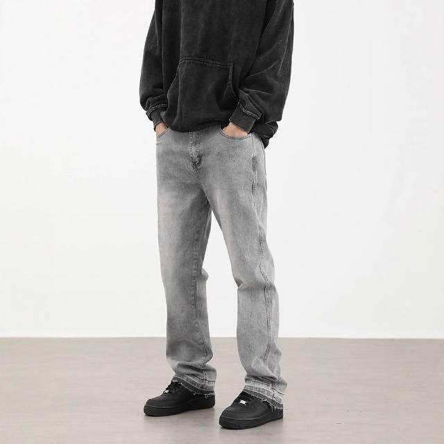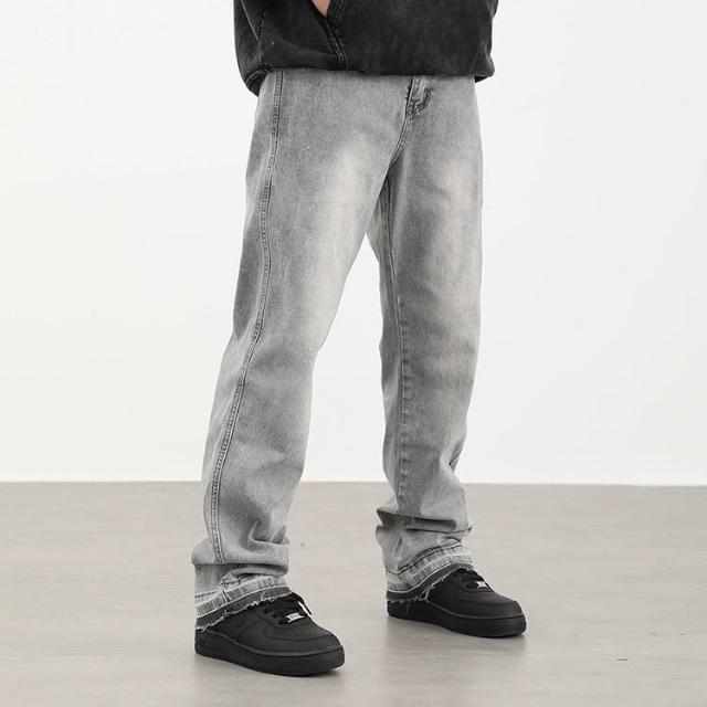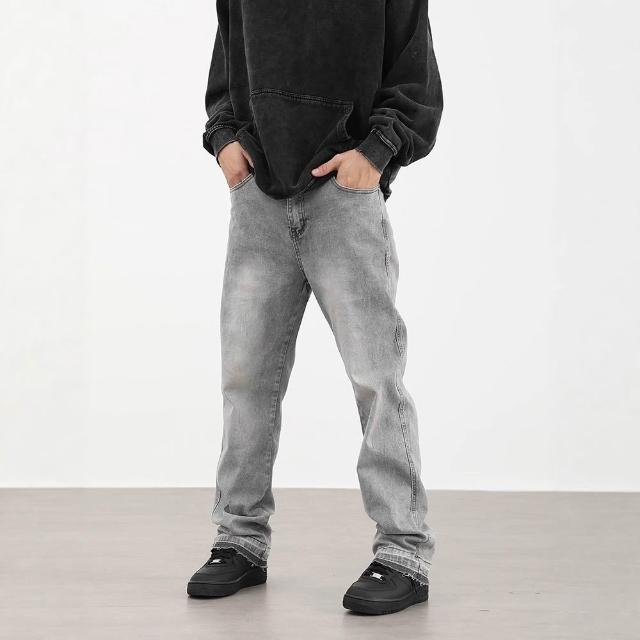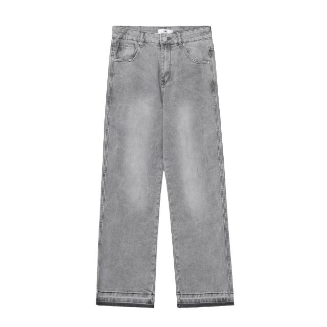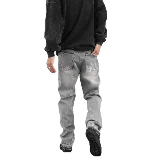 免運 免稅 美式復古高街霧霾灰色百搭休閑牛仔褲男女修身顯瘦百搭褲子