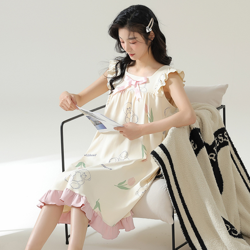 免運 免稅 純棉睡裙女士夏天薄款帶胸墊夏季新款韓版吊帶睡衣休閑家居服百搭