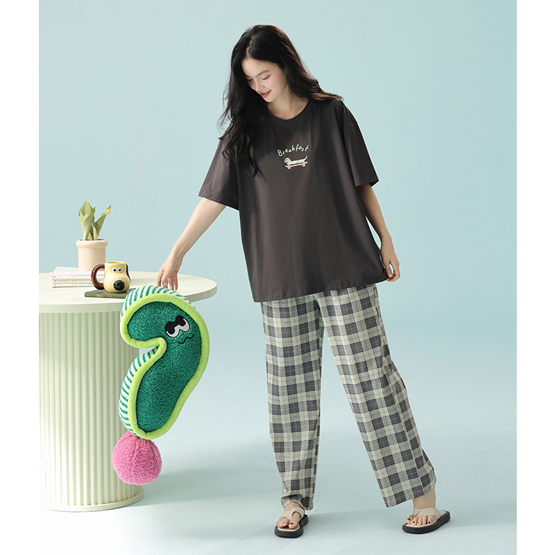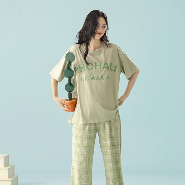 免運 免稅 抗菌新疆棉春夏季拉架棉睡衣女夏純棉短袖長褲韓版薄款家居服