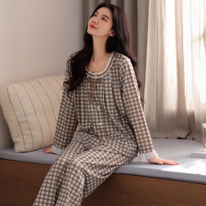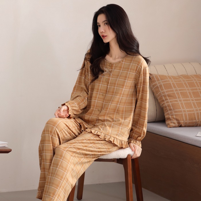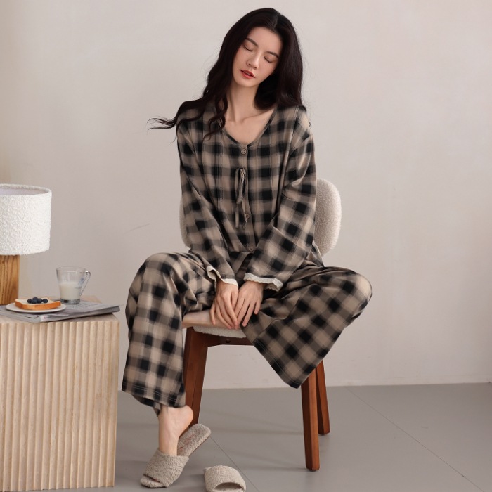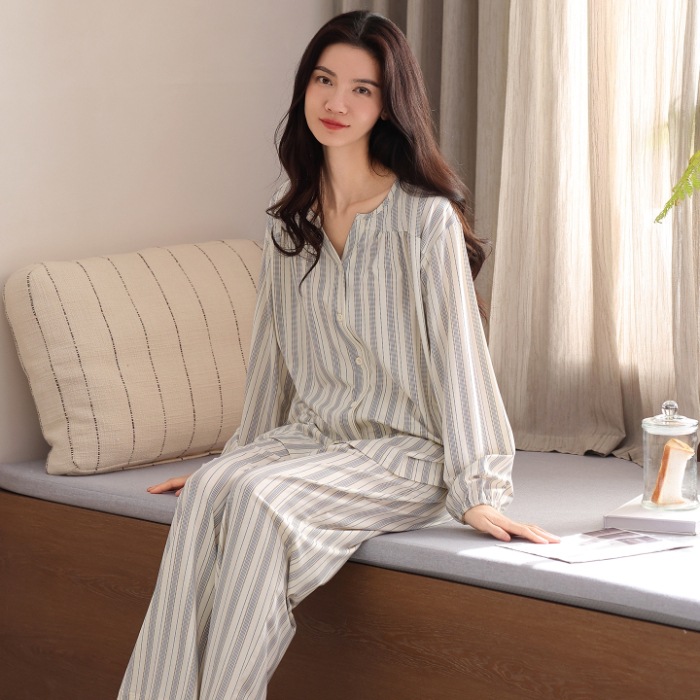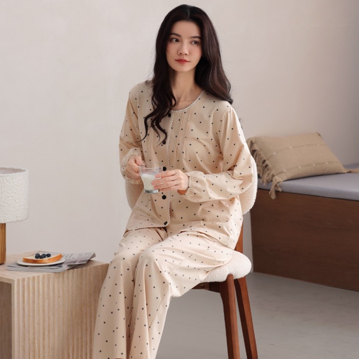 免運 免稅 現貨發長袖長褲睡衣女棉質秋季新款休閑韓版一件代發包郵
