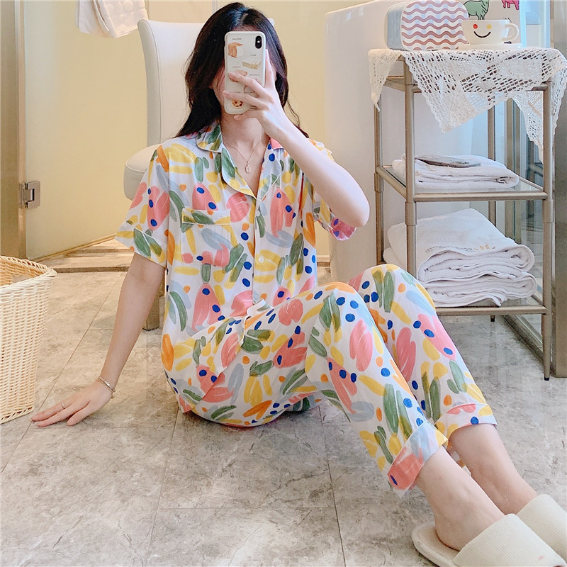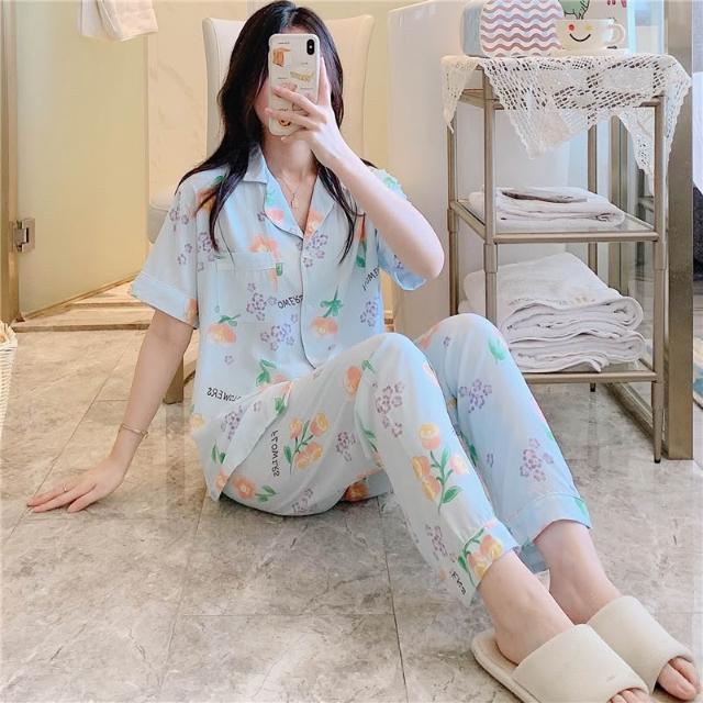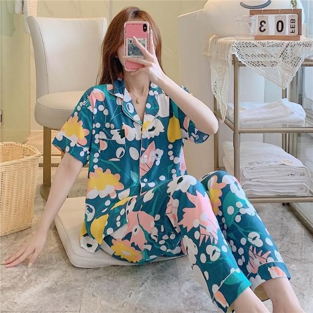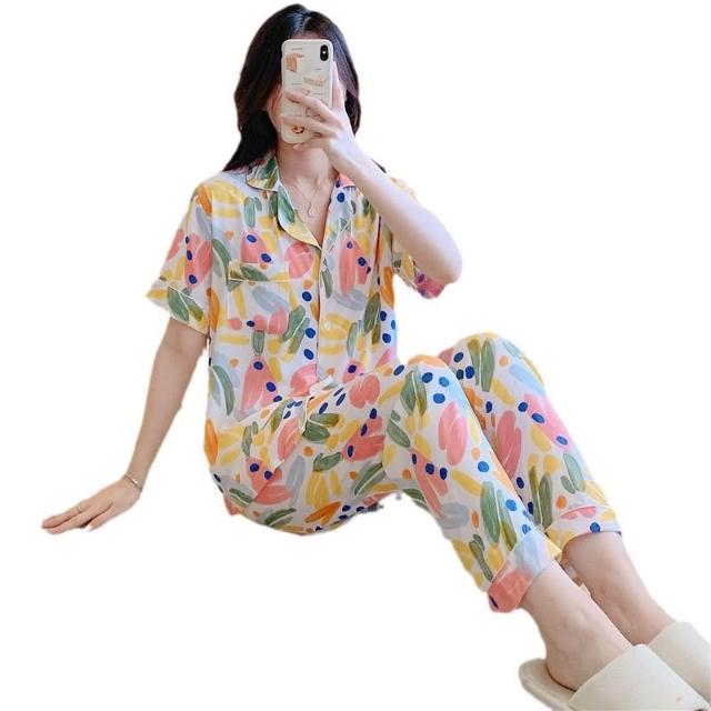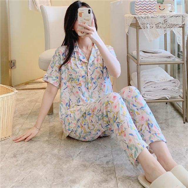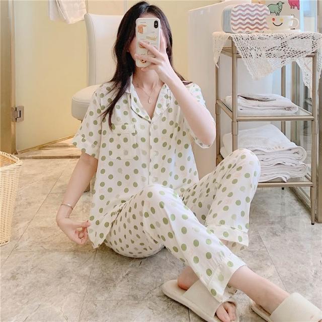 免運 免稅 春夏天綿綢睡衣女士長袖薄款棉綢套裝韓版人造棉寬松家居服加大碼