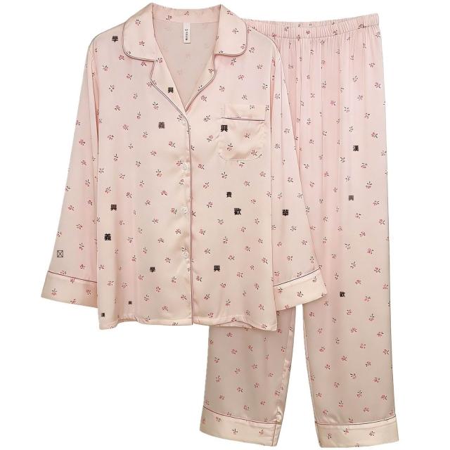 免運 免稅 睡衣女春夏季冰絲薄款性感長袖小碎花絲綢印花家居服套裝可外穿