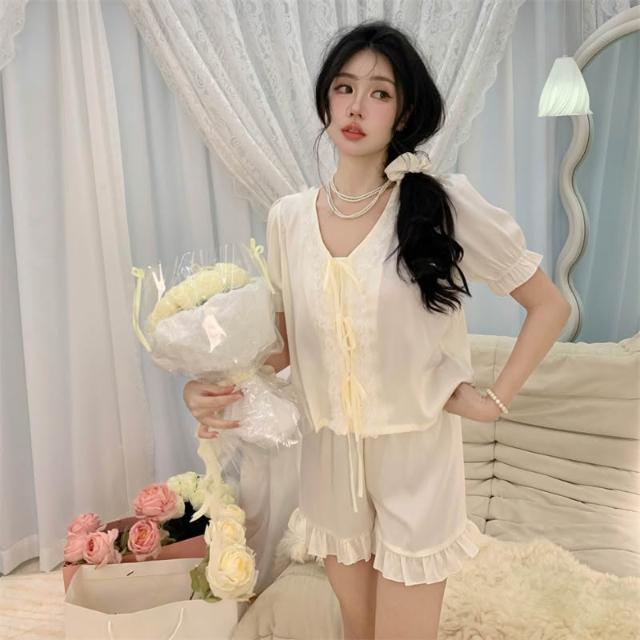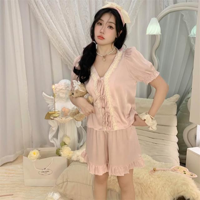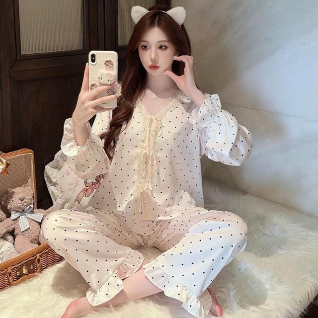免運 免稅 甜美公主風冰絲睡衣女士春夏冰雪絲開衫長袖法式宮廷仿真絲家居服
