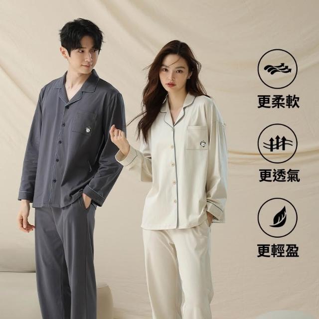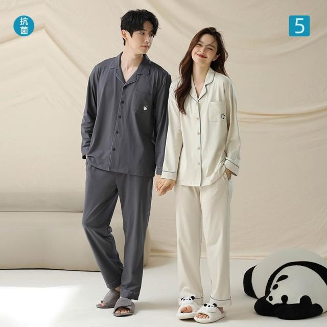 免運 免稅 抗菌新疆棉秋冬季新款長袖純棉情侶睡衣女士熊貓男睡衣家居服