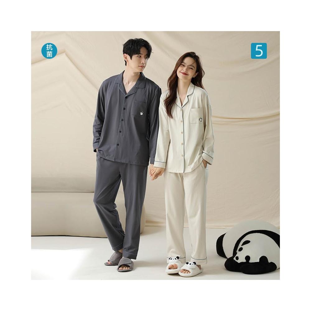 免運 免稅 抗菌新疆棉秋冬季新款長袖純棉情侶睡衣女士熊貓男睡衣家居服