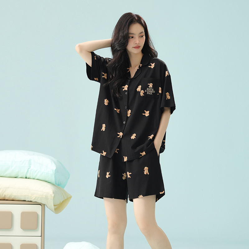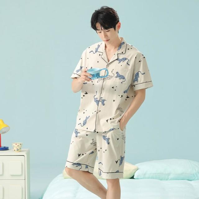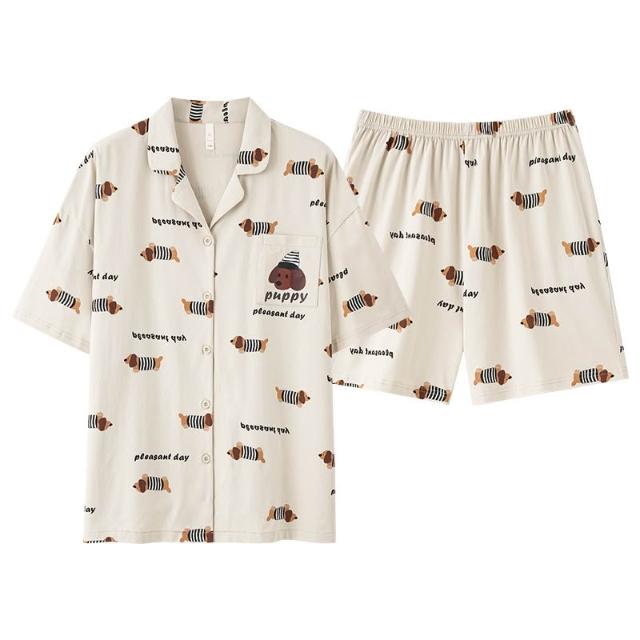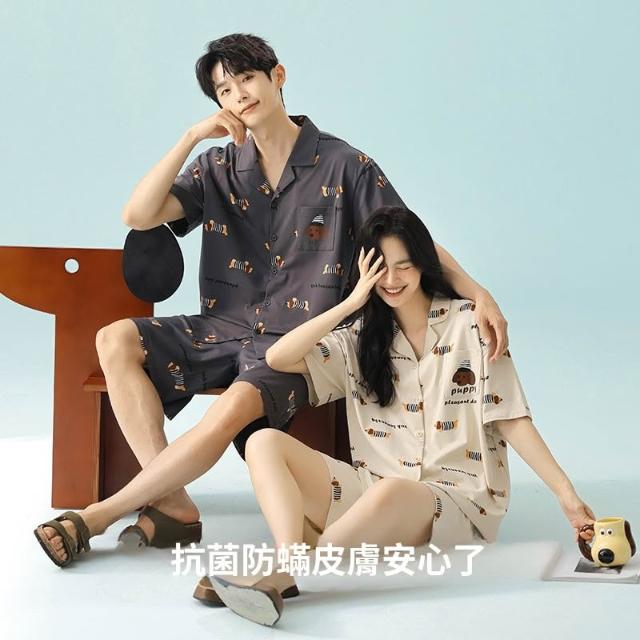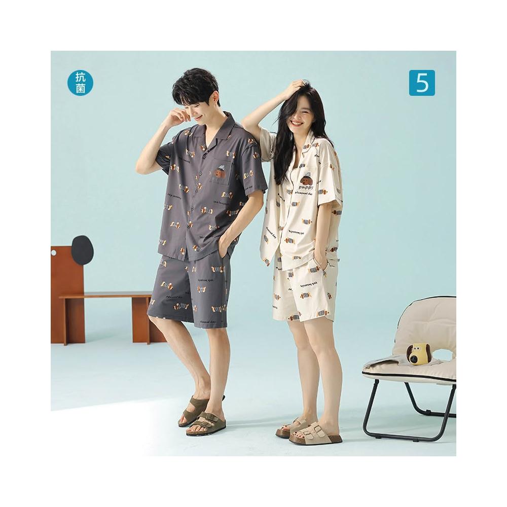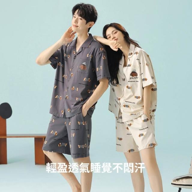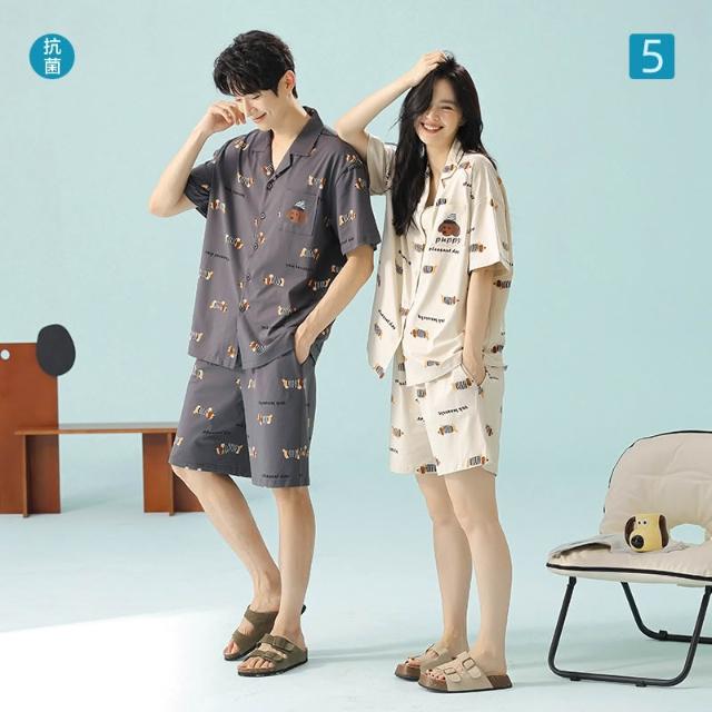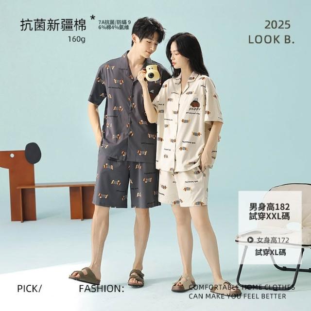 免運 免稅 抗菌新疆棉春夏季純棉短袖情侶睡衣女士度假休閑男家居服套裝