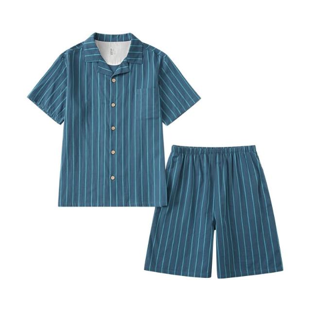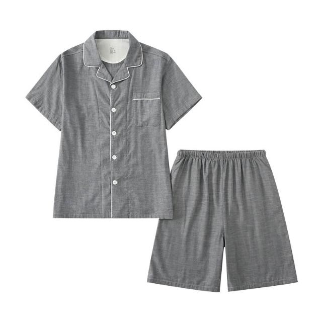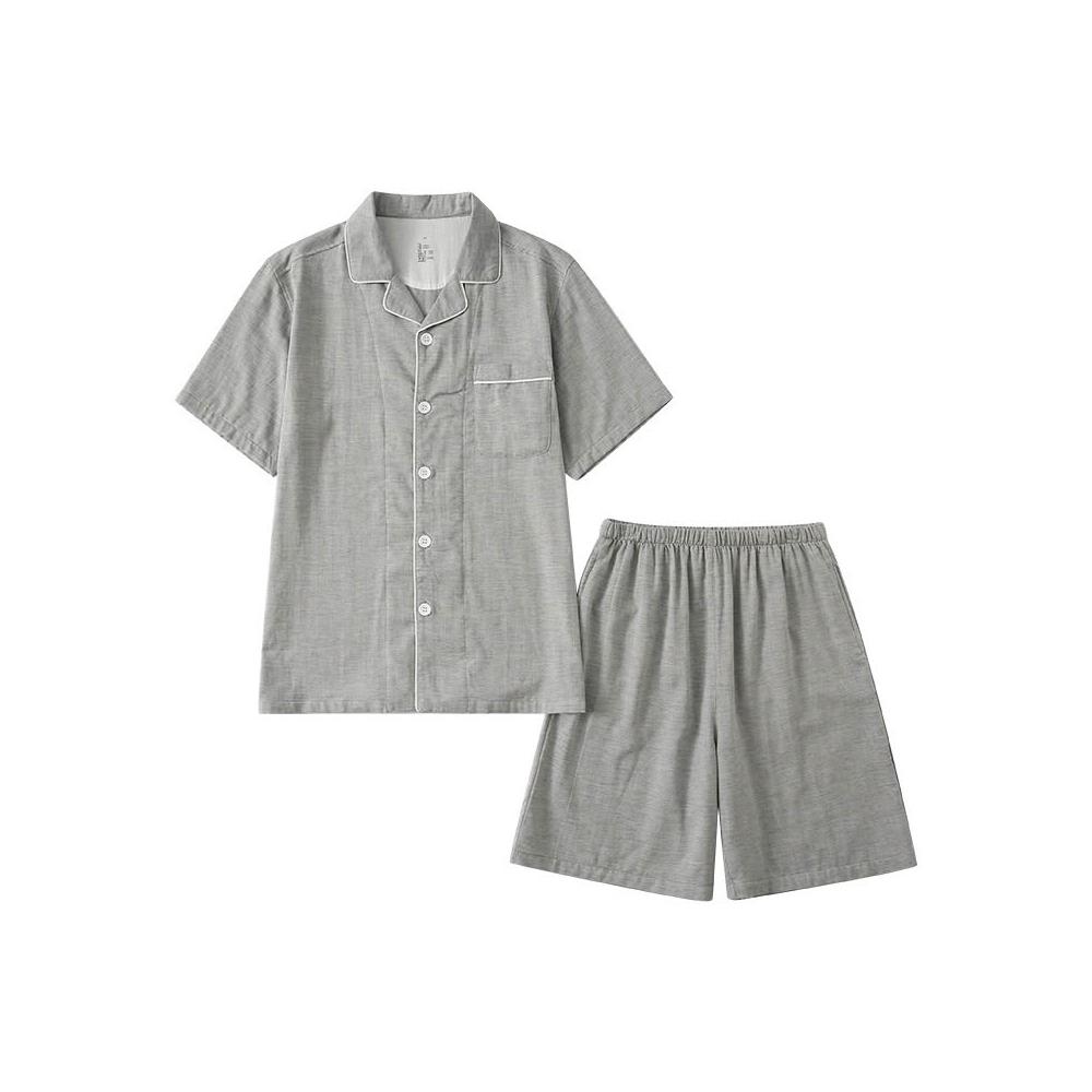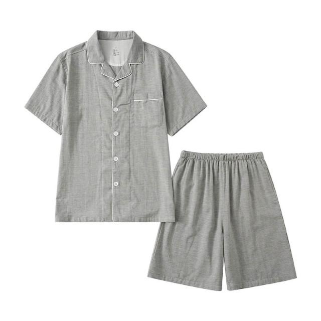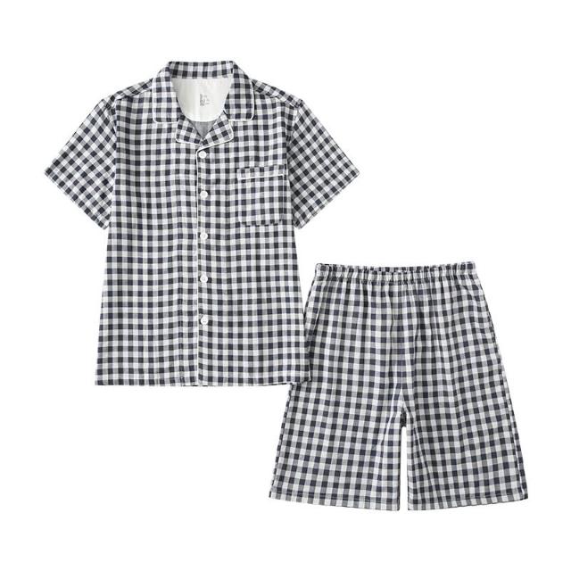 免運 免稅 無側縫夏季無印全棉情侶短袖短褲套裝男女款小格子居家服休閑睡衣