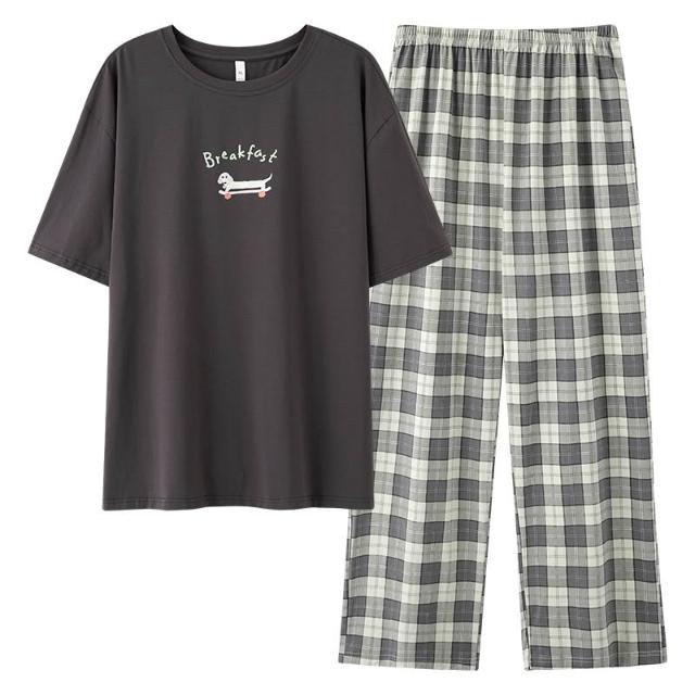 免運 免稅 抗菌新疆棉夏季純棉男士睡衣短袖長褲拉架棉薄款可外穿家居服