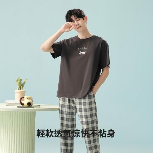 免運 免稅 抗菌新疆棉夏季純棉男士睡衣短袖長褲拉架棉薄款可外穿家居服
