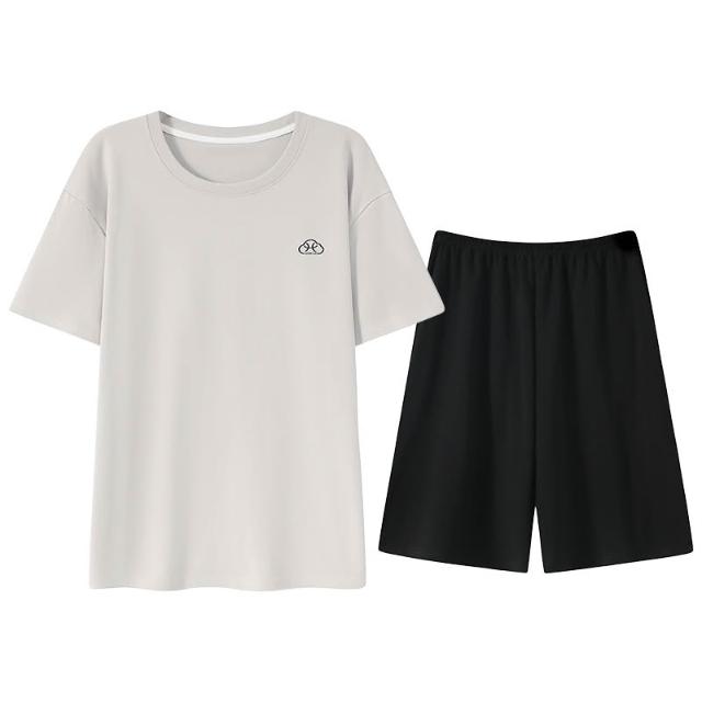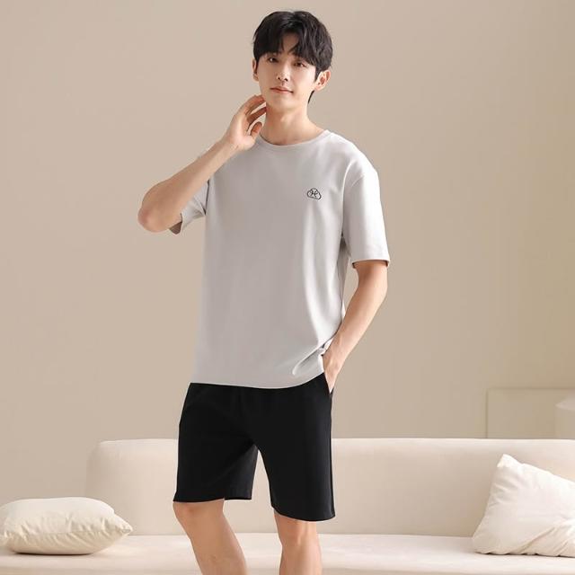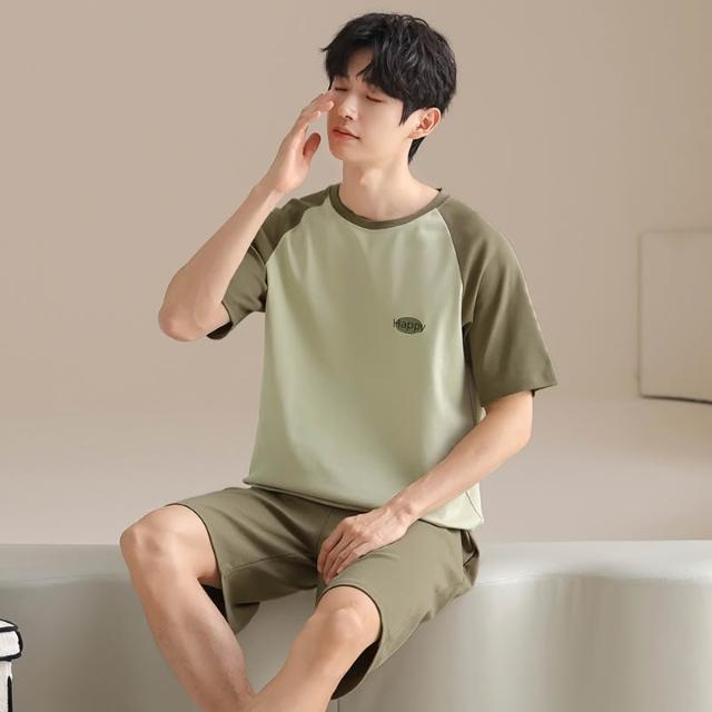 免運 免稅 夏季純棉睡衣男士圓領純色高檔新款可外穿全棉柔軟男生家居服套裝
