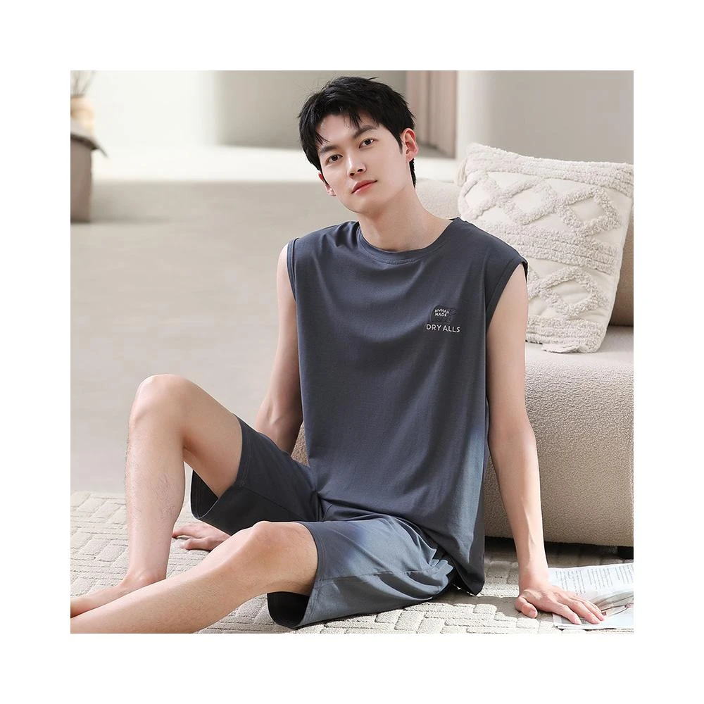 免運 免稅 夏季新款莫代爾圓領無袖背心短褲睡衣青年男士可外穿家居服兩件套