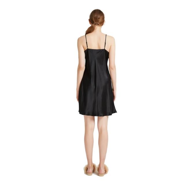 免運 免稅 蝶繡19姆米V領真絲睡裙女夏季桑蠶絲簡約家居服性感絲綢吊帶裙