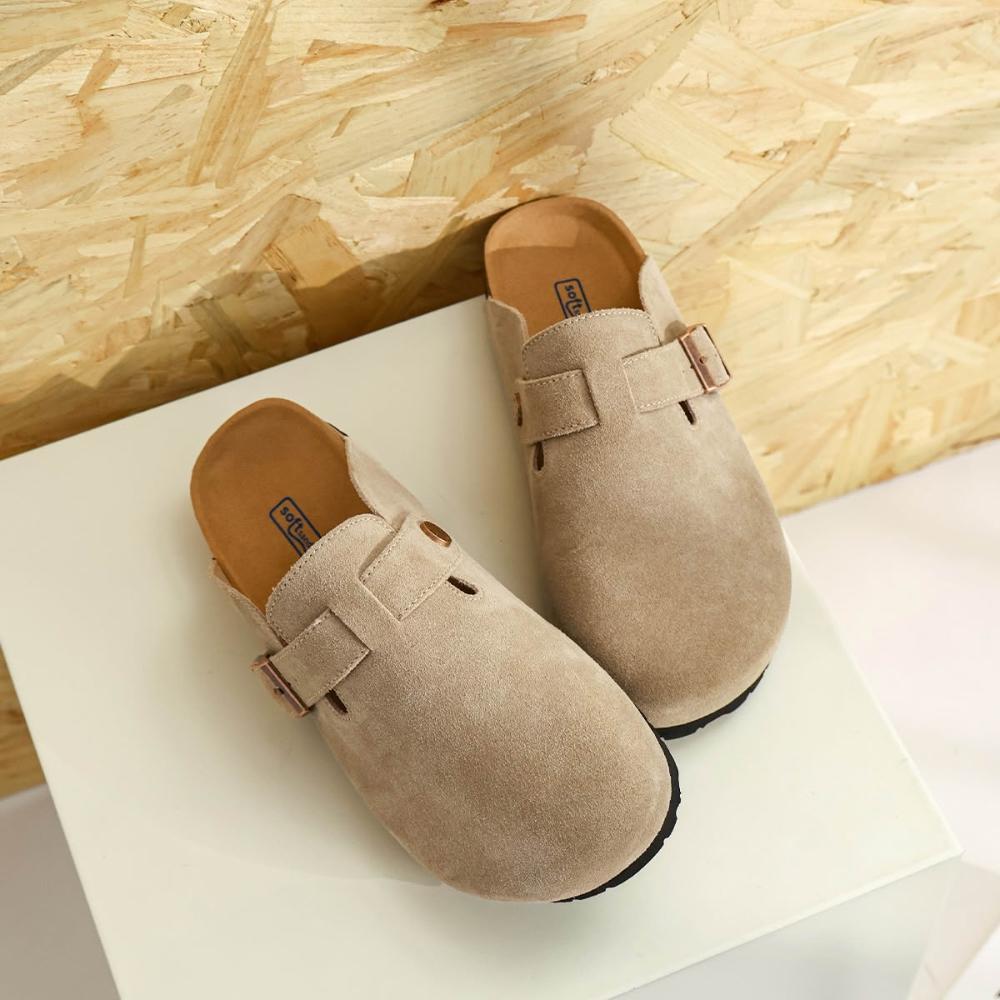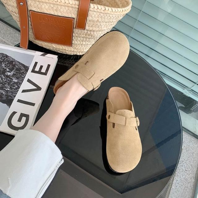 免運 免稅 現貨大碼牛皮勃肯鞋大碼包頭半拖軟木釣魚博肯鞋厚底拖鞋女夏外穿