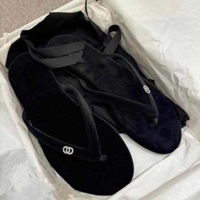 免運 免稅 小香風平底夾趾拖鞋女外穿夏絲絨人字拖度假海灘水鉆涼拖