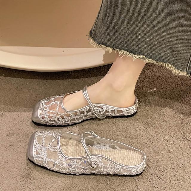 免運 免稅 女網紗穆勒平底涼拖夏季新款包頭拖鞋女外穿小香風包頭半拖鞋