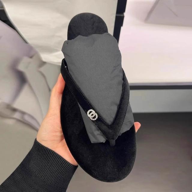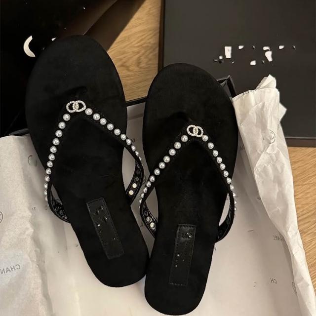 免運 免稅 小香風水鉆夾趾人字拖女夏外穿百搭休閑海邊沙灘鞋懶人平底涼拖鞋