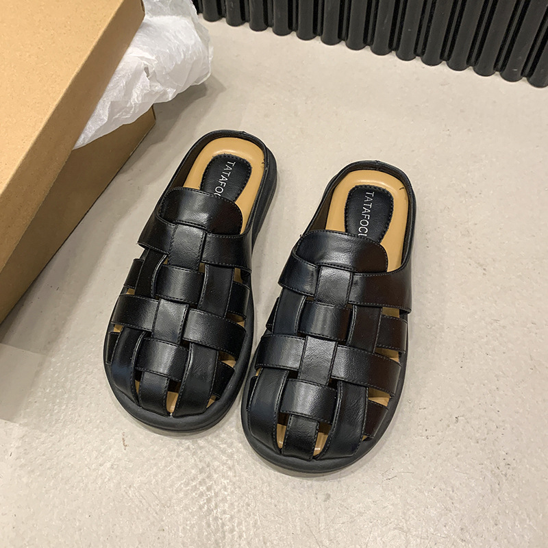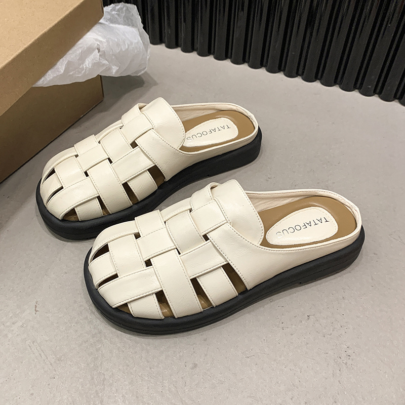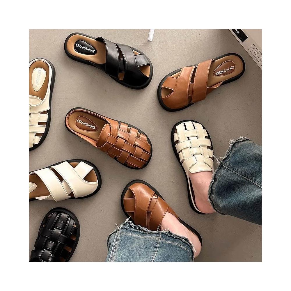免運 免稅 辦公室拖鞋女夏外穿新款包頭羅馬半拖百搭休閑穆勒涼拖一腳蹬