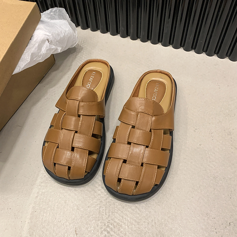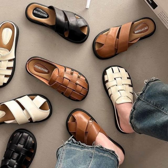 免運 免稅 辦公室拖鞋女夏外穿新款包頭羅馬半拖百搭休閑穆勒涼拖一腳蹬
