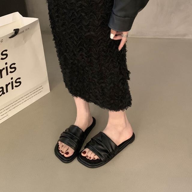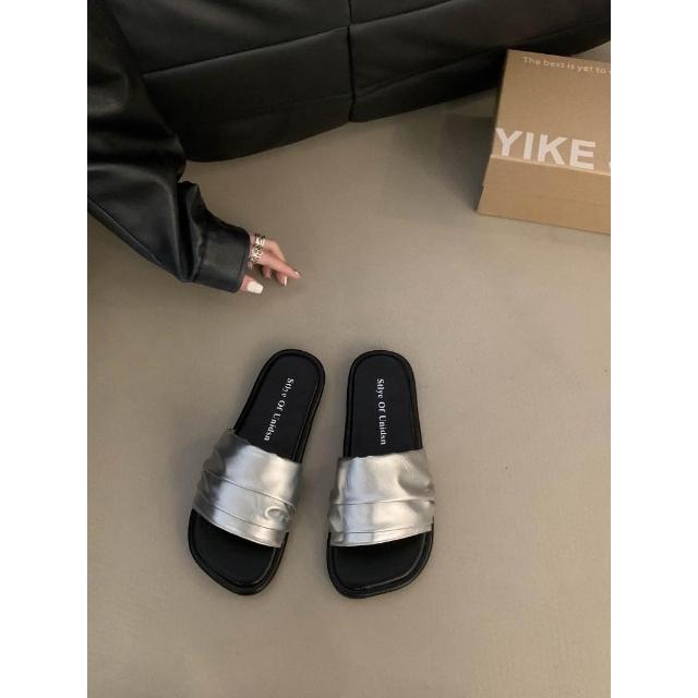 免運 免稅 銀色平底一字拖鞋女鞋子外穿年新款夏季軟底沙灘法式涼拖涼鞋