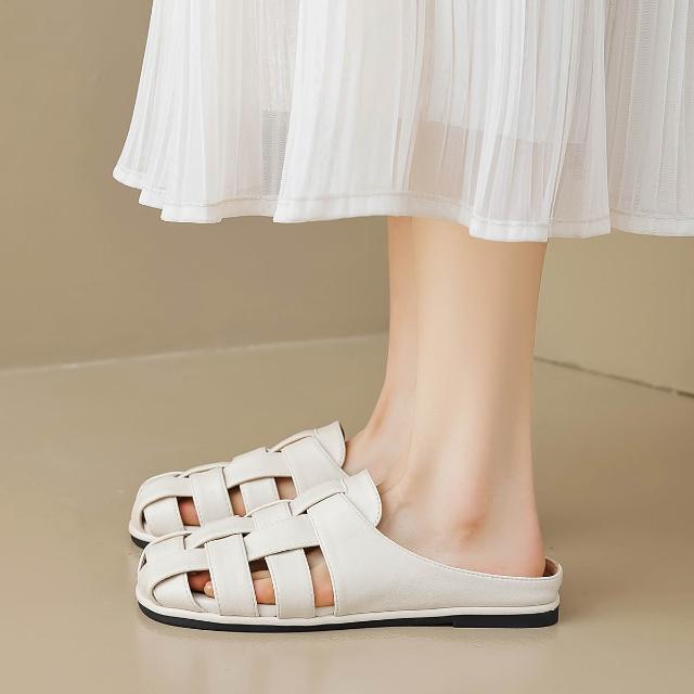 免運 免稅 威威女郎 9961-1法式包頭半拖鞋女夏外穿韓版編織羅馬涼拖鞋軟底