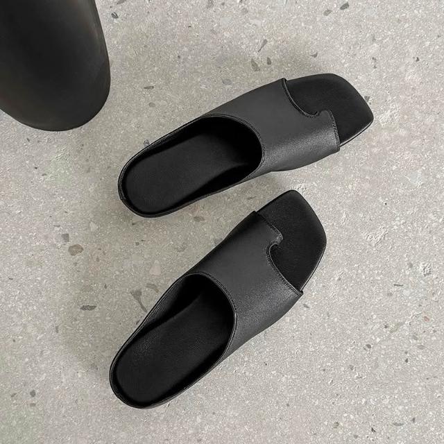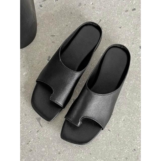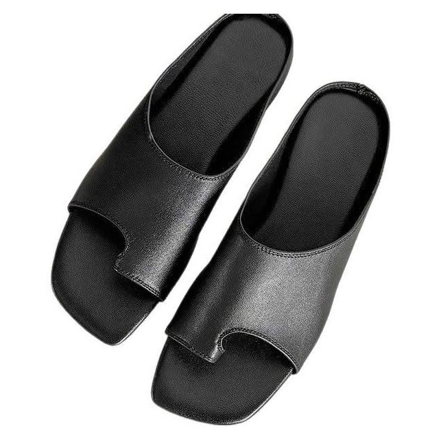 免運 免稅 牛皮版~復古小眾套趾一字涼拖鞋女外穿新款夏季時尚平底涼鞋