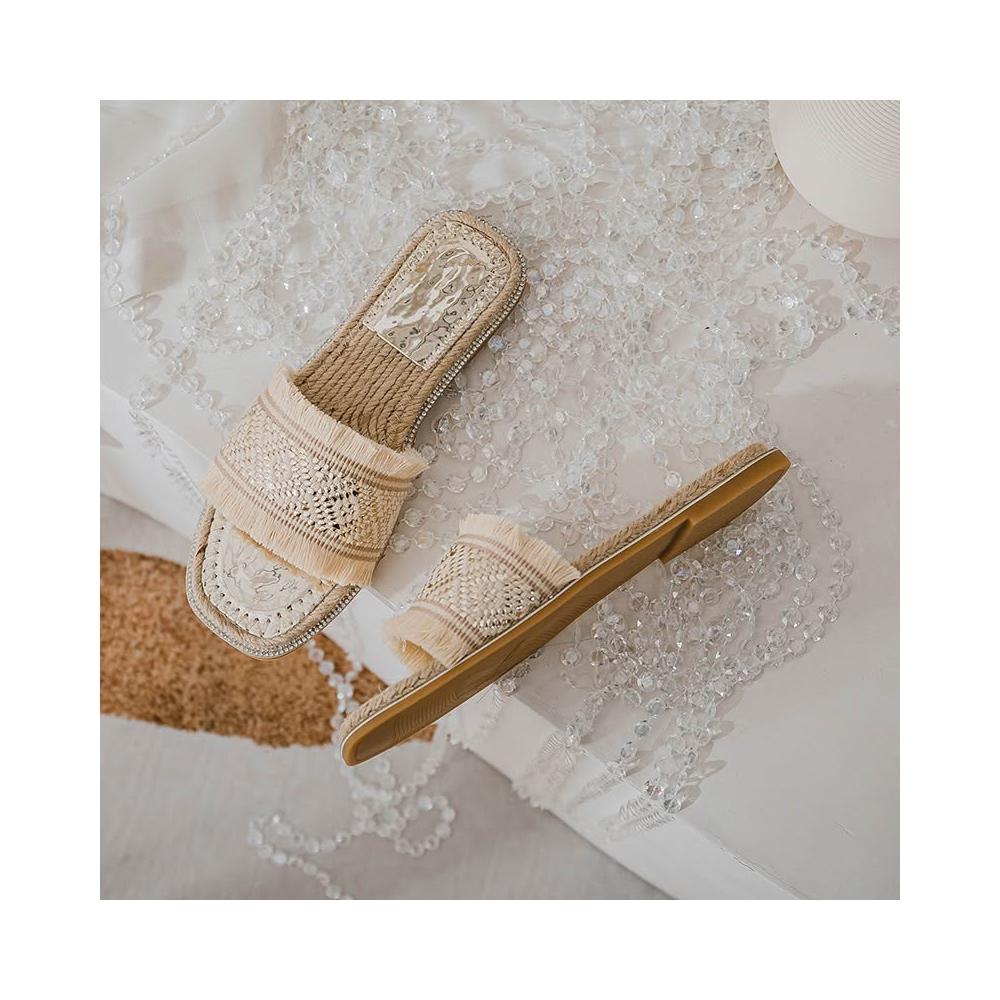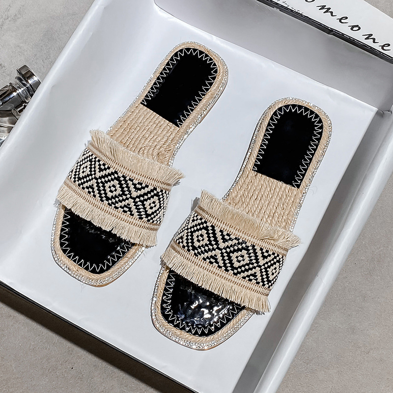 免運 免稅 草編拖鞋女夏外穿時尚新款夏季外出平底一字涼拖鞋大碼41一43