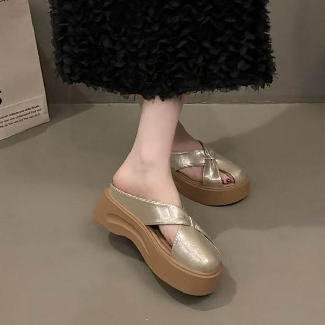 免運 免稅 厚底镂空包頭半拖鞋女2026年新款夏外穿一腳蹬小個子高級感涼拖鞋