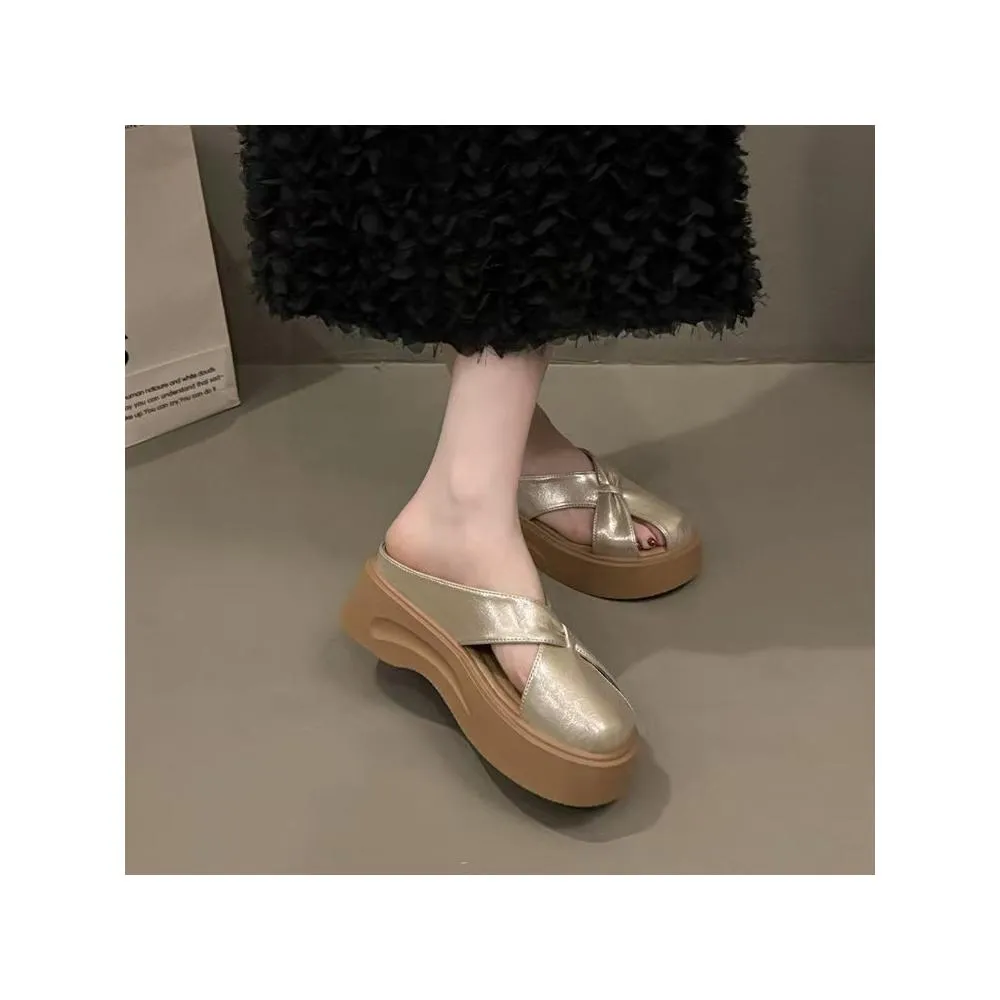 免運 免稅 厚底镂空包頭半拖鞋女2026年新款夏外穿一腳蹬小個子高級感涼拖鞋