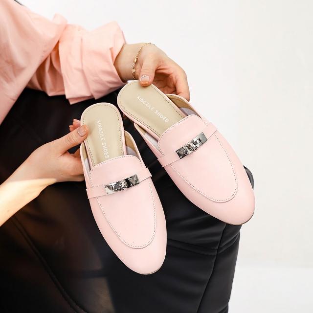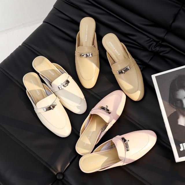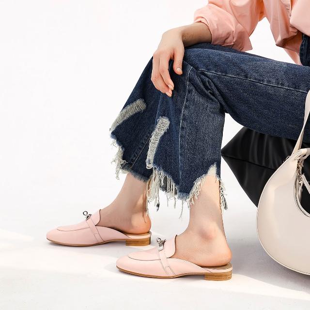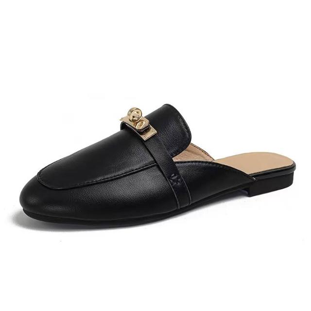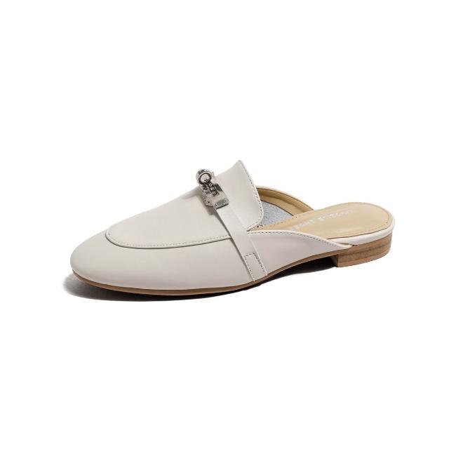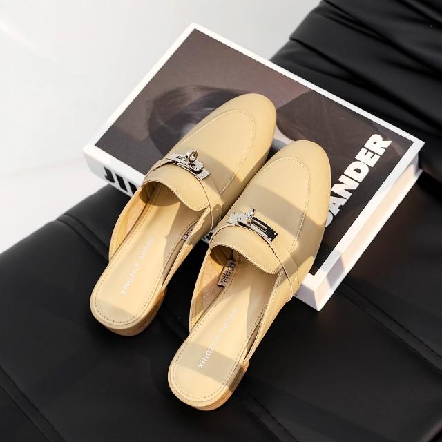 免運 免稅 羊皮包頭半拖鞋女外穿涼拖年春夏季新款鎖扣懶人鞋平底穆勒鞋