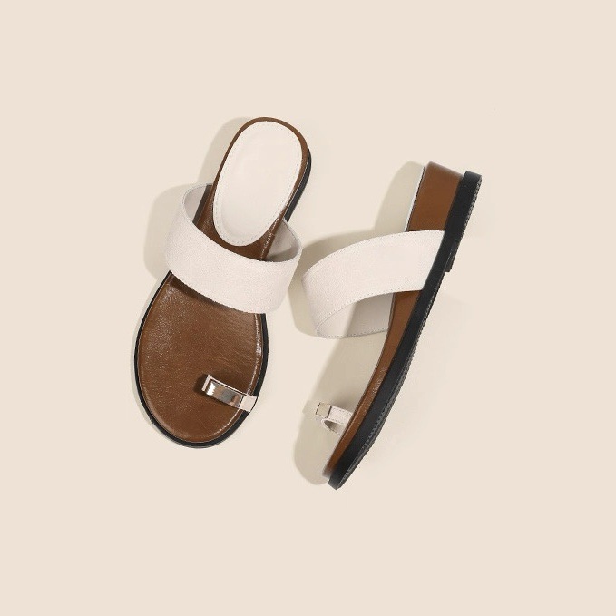免運 免稅 牛皮版~法式金屬套趾涼拖鞋女夏外穿高級感一字帶厚底夾腳人字拖