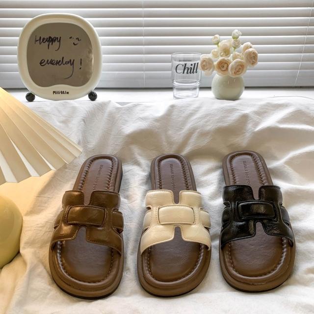 免運 免稅 復古法式一字拖鞋女夏外穿新款網紅平底海邊度假涼鞋休閑涼拖