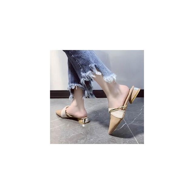 免運 免稅 適用包頭半拖鞋女新款夏季女鞋穆勒鞋時尚外穿涼拖鞋女平低跟