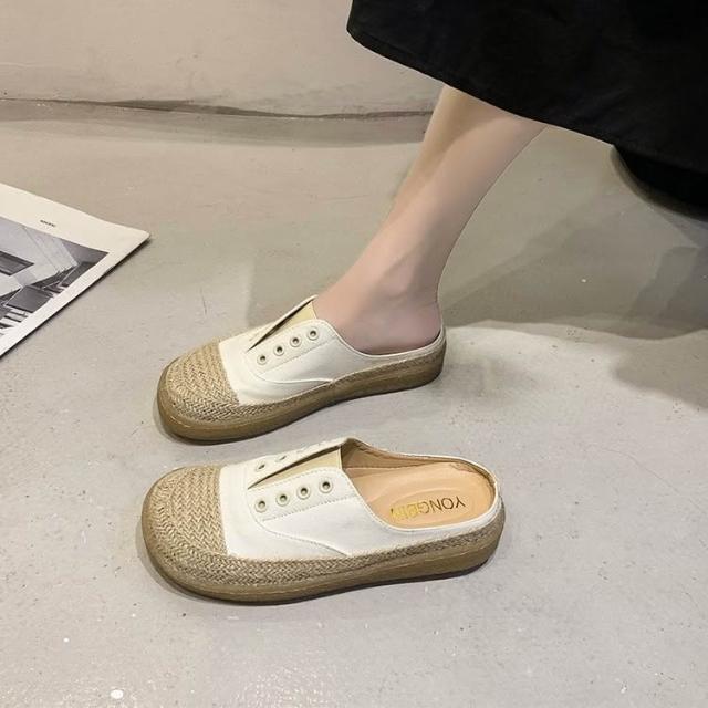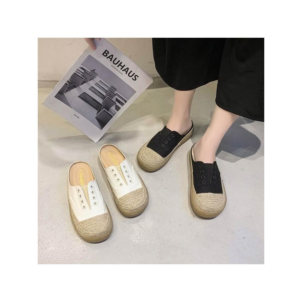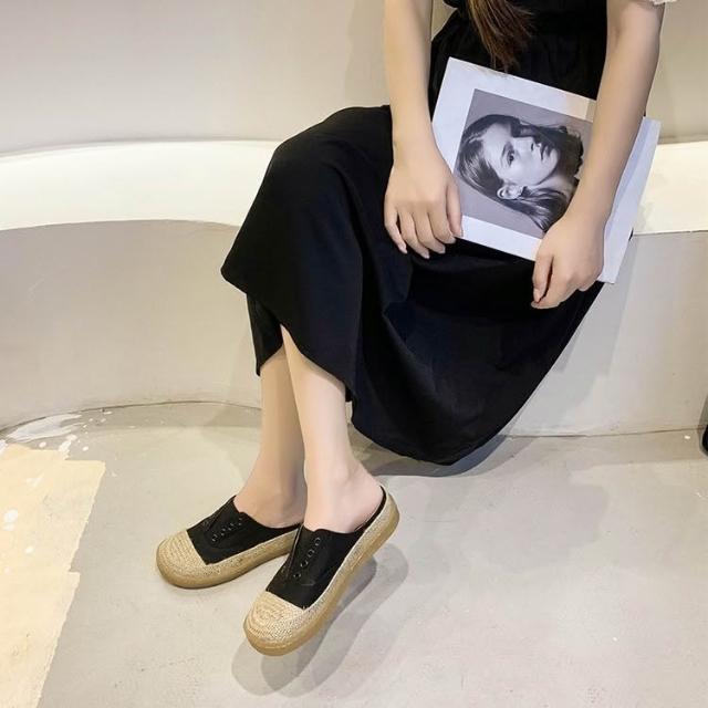 免運 免稅 帆布拖鞋女厚底外穿系帶春夏漁夫鞋草編百搭學生平底半拖鞋夏